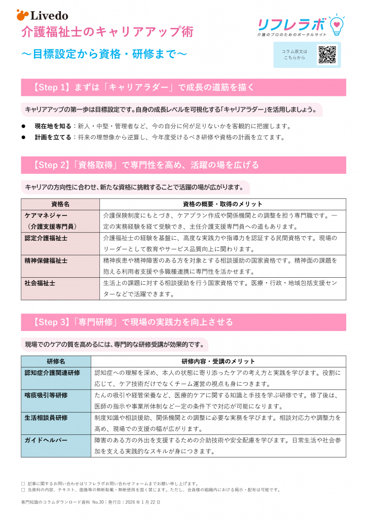 【研修で使える便利なダウンロード資料付き】介護福祉士でキャリアアップを目指すには?スキル・資格取得・管理者など