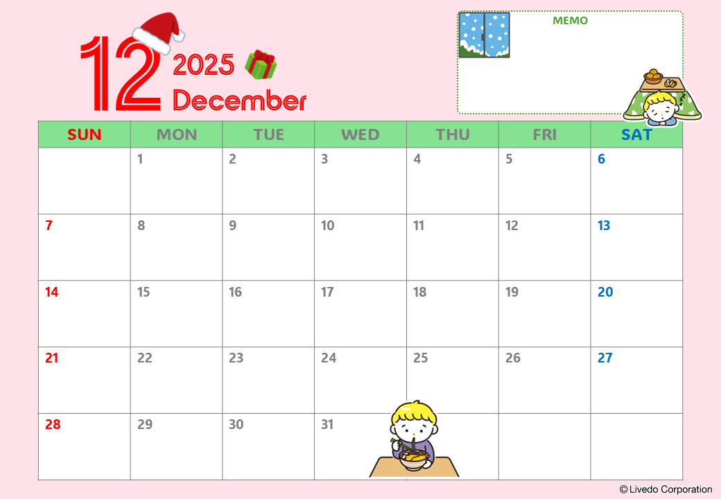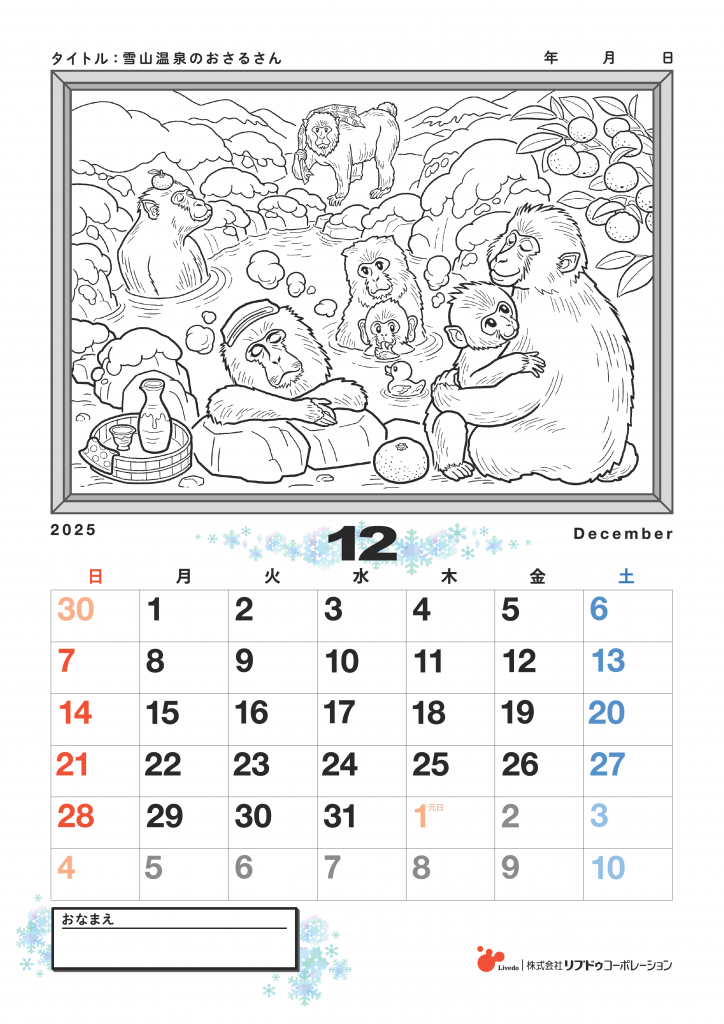 ※こちらは2024年に公開されたぬりえのカレンダー部分を2025年の物にリメイクした内容となります。