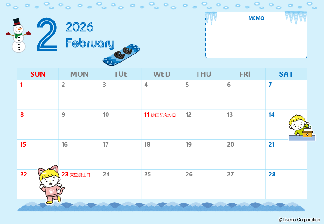 カレンダーフォーマット2026年2月