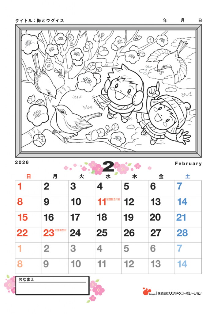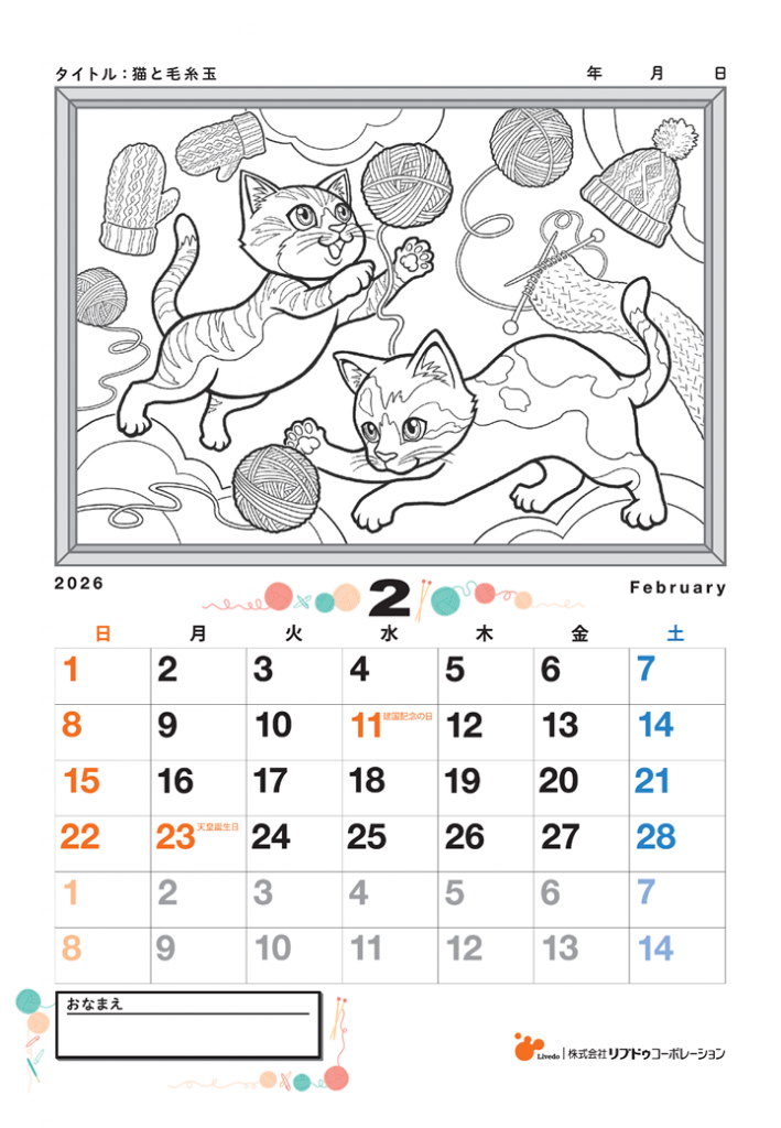 ※こちらは2025年に公開されたぬりえのカレンダー部分を2026年の物にリメイクした内容となります。