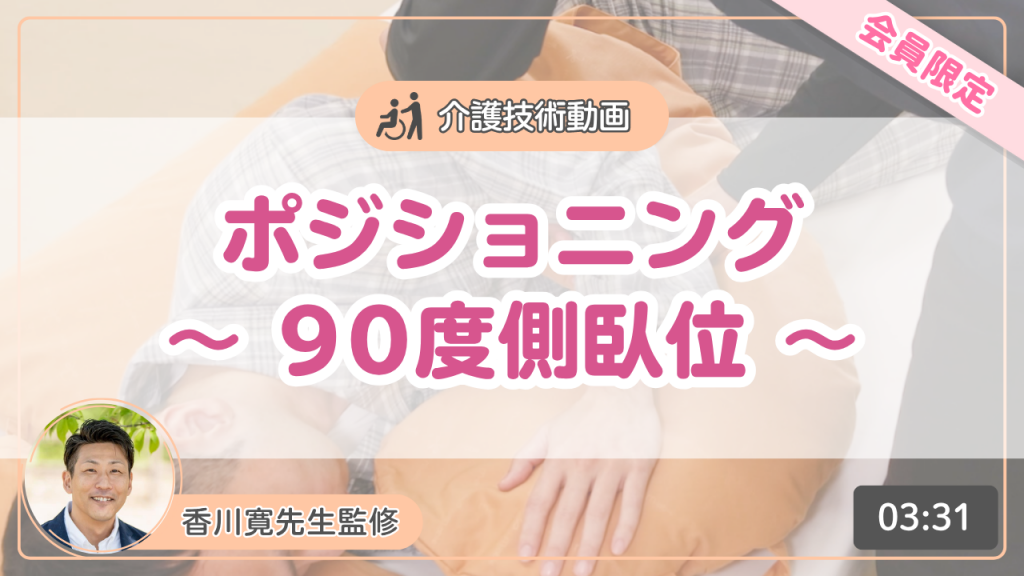 【介護技術動画】ポジショニング~90度側臥位~】動画の資料です。